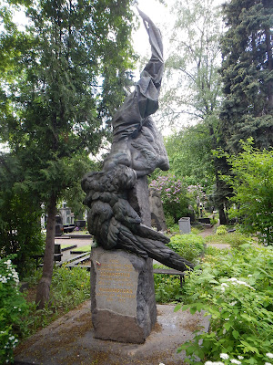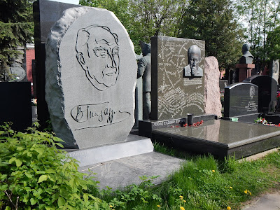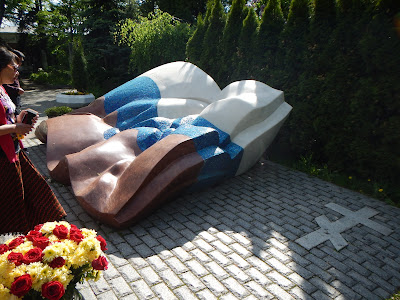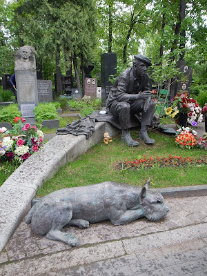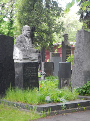 After lunch it was time for some more driving around in traffic to get to the historic Novodevichy Cemetery and Convent. This park like cemetery is full of statues and monuments in tribute to the Russian leaders, actors, scientists, poets and musicians that are buried there. Many famous names such as Boris Yeltsin, Nikita Khrushchev, Anton Chekhov and many other historical Russian figures are memorialized here. Fresh flowers adorn the graves as it is Russian tradition to visit their past.