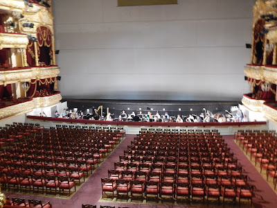 As a special benefit to our group, they allowed us to return to the main theater and sit in the boxes next to the President's box, and watch part of the rehearsal for the orchestra. How special to experience this in the fabled Bolshoi Theater.