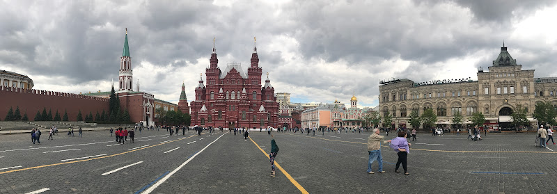 As you walk through the gates it's surprising just how big this square is. On one side of the square is the Kremlin walls, the other side of the square is the historic GUM shopping centre. The deep brick red building is the State History Museum is part of the entrance into the square, and at the far end is the unmistakable Onion domes of St. Basil's Cathedral.