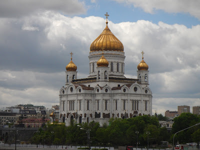 On the river bank near the Kremlin, is the Cathedral of Christ the Savior, it is the tallest Orthodox Christian church in the world. The original church here was destroyed in 1931 by Stalin, who had plans for a grand Palace of the Soviet legislature. They started, but never finished because of World War II. After the Soviet Union collapsed they rebuilt this church over a five year period starting in 1995. Now you know.