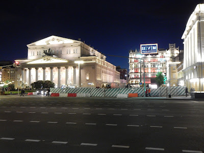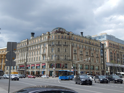 Our tour starts out as a walking tour, since our hotel is right in the heart of Moscow, it's a block away from the Bolshoi Theater. We are in the neighborhood of the Metropol Hotel, and just down the street is the former KGB headquarters.