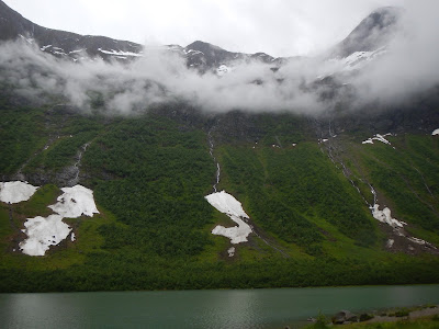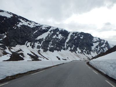 We even ran into a little bit of snow before cresting the hill and heading down towards Sognefjord and the town of Vik.