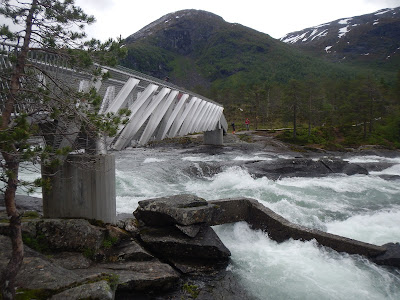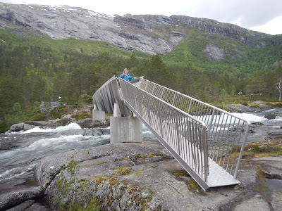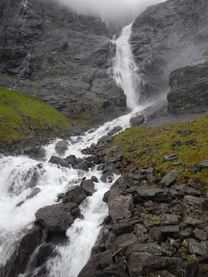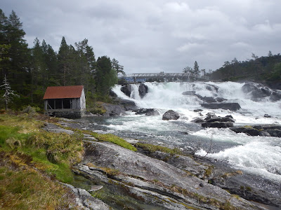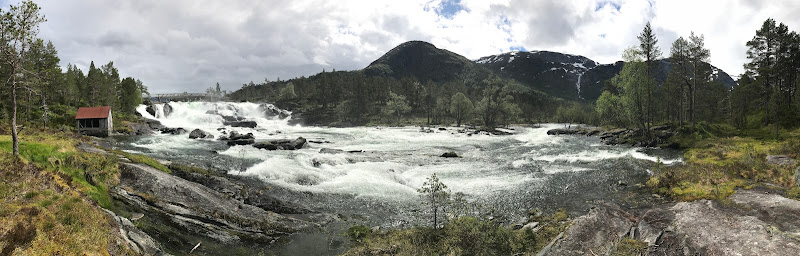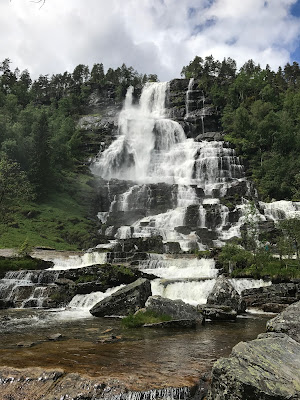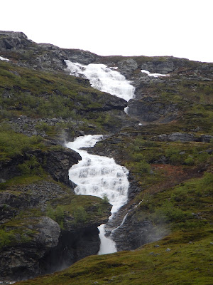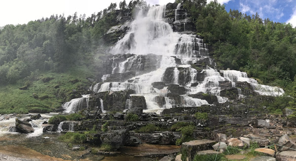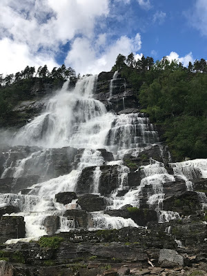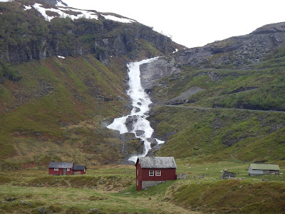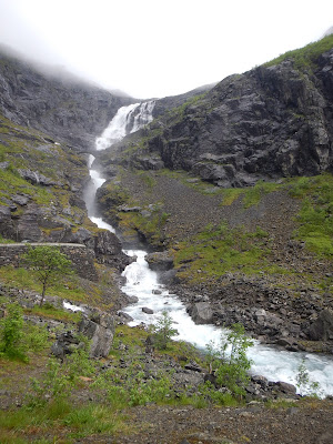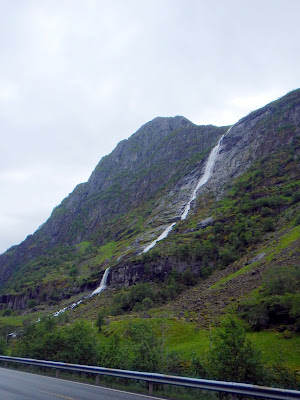 Remember those falls the bus driver wouldn't stop at? Turns out that we drove right past them going the other way... this time we would stop and check them out. Tvindefossen is a waterfall near Voss, it sits right on the side of the main highway. The many-stranded waterfall is usually said to be 152 metres high.