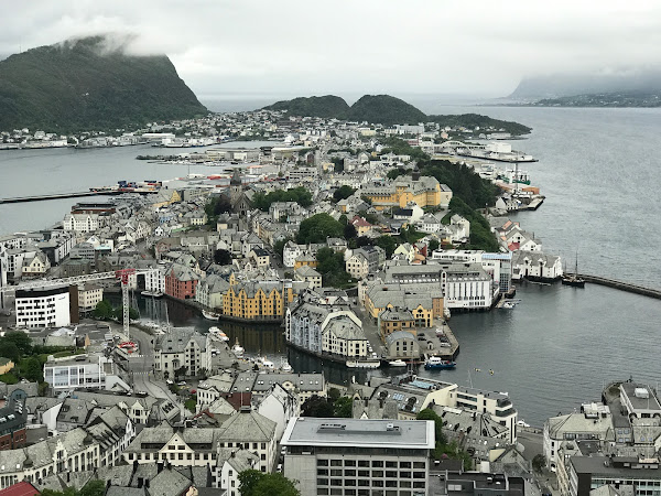 As it was quite foggy, the views of the great wall in the town of Andelsnes wouldn't be great, so we decided to drive a little further and head to Ålesund. Ålesund is spread across three islands in an archipelago, it's known for the art nouveau architectural style that was used after most of the city burned in 1904.