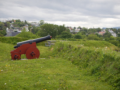 It's a bit of an uphill hike to get to Kristiansten Festning which overlooks the main city of Trondheim. The fortress was built from 1681-1684, and was a key component of repelling the invading Swedes in 1718. With all the cannons surrounding the large star shaped complex you can understand how.
