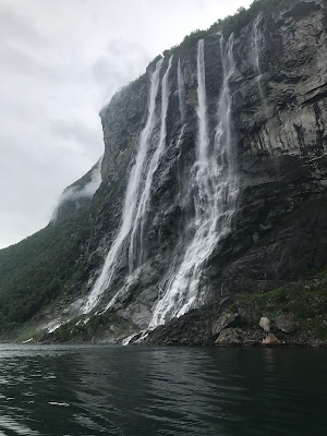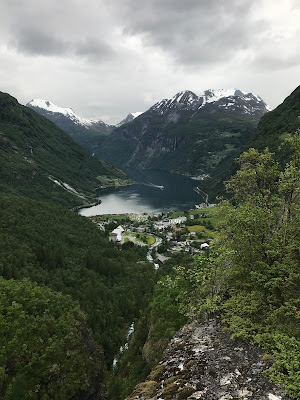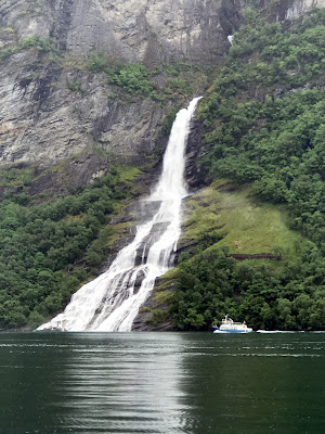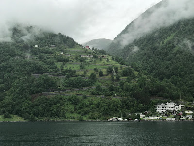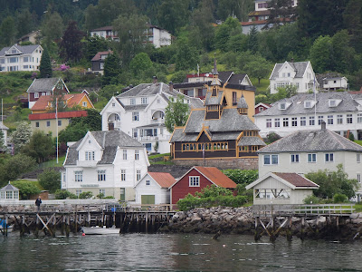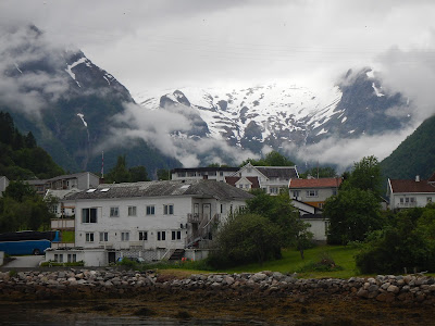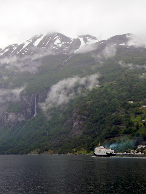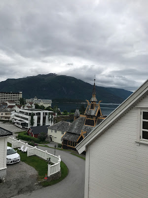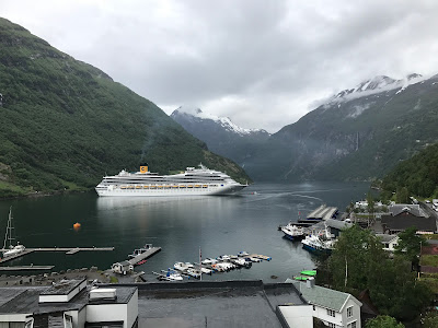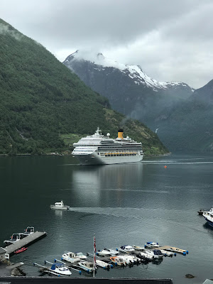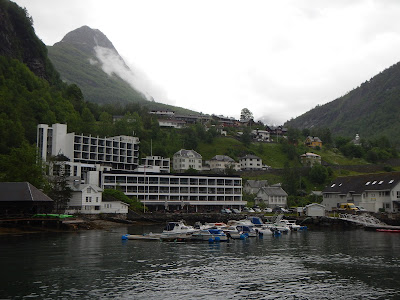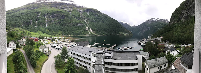 As we did a little extra driving today (the small town of Stryn didn't seem like much), and ended up in scenic Fjord town of Geiranger, we splurged and stayed at the Hotel Geiranger, with 'Panoramic views' of the fjord.
