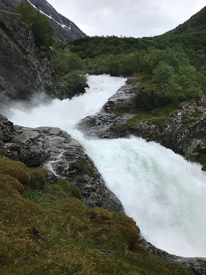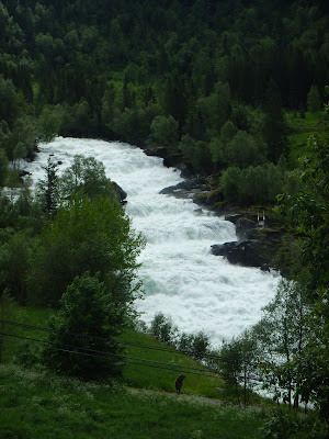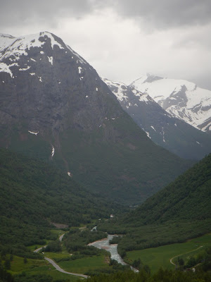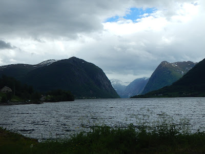 Our original plan was to take the ferry from Balestrand up to Fjærland through the Fjærland fjord, turns out the boat going there isn't a car ferry. So we asked our friendly neighborhood breakfast serving hotel manager about it, and he said to drive the long way around, it's kind of a secret route, but it's a very scenic drive and takes almost as long.