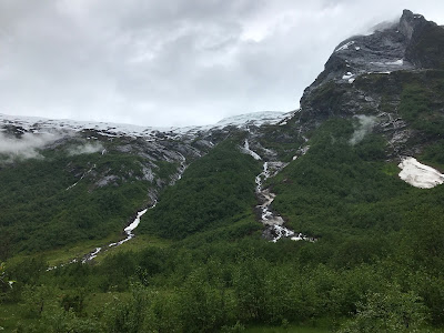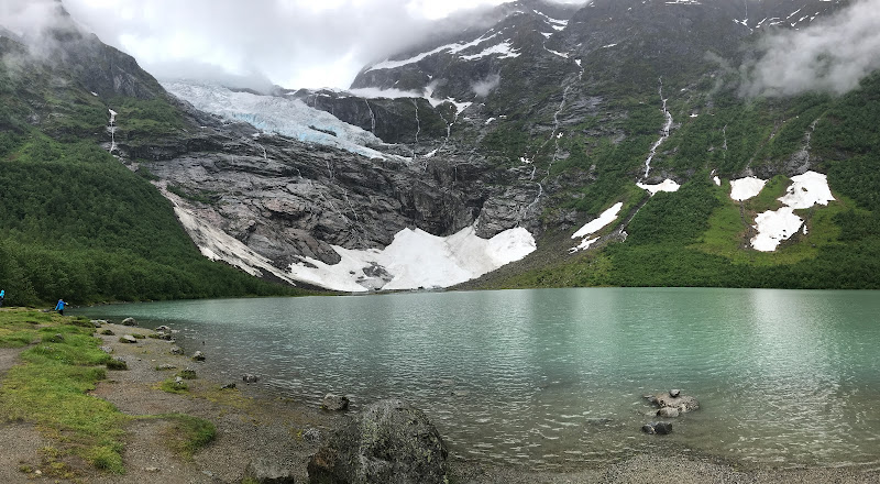 Luckily, just down the road was Bøyabreen glacier with a nice cafe called Brevasshytta. I ordered Sausage and Fries expecting some kind of bratwurst, it was just a hot dog on a plate, but the view was spectacular
