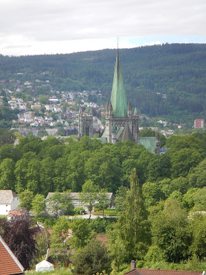 We hiked back down the hill and across the river to the Nidaros Cathedral which has been a popular pilgrimage site for nearly 1000 years. Built over the burial site of Saint Olav, the king of Norway in the 11th century, who became the patron saint of the nation. It was built from 1070 to 1300, and designated as the cathedral for the Diocese of Nidaros in 1152. It is the northernmost medieval cathedral in the world.