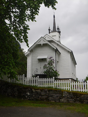 We drove South to see the Kvamsøy Church which sits on an island right off the coast. The white, stone, basilica church has 210 seats and it was built approximately during the years 1280-1300. It was the church for the parish of Kvamsøy until it was replaced in 1903 by the newly built Sæle Church. Since the new church was built, Kvamsøy Church is no longer used regularly. Instead there are only 2 services held each year: one in May and one on Olsok, a national day of celebration in Scandinavian countries..