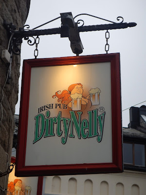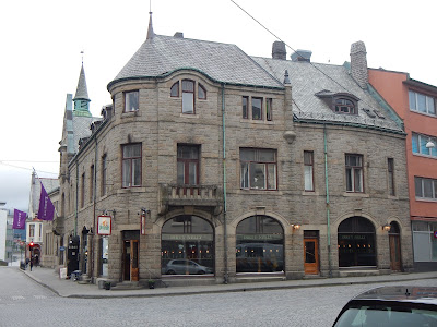 With no luck using the internet, we headed out towards the wharves area of town for dinner, we ended up at a funky/trendy place called Søstrene Karlsen Bar & Kjokken. The first waiter dumped us when he found out we couldn't speak Norwegian, and although the food was very good, the service wasn't. We should have gone to that national chain restaurant Olivia's, there was one right next door. I'll give Søstrene Karlsen this, they did have cool bathrooms.
