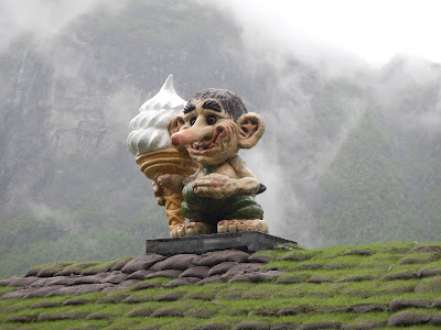 We made it down safely and continued South towards Andalsnes. Not sure what this little mini-troll-mall was on the side of the road, but it had Ice-Cream and bathrooms, life's necessities.