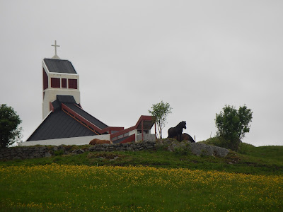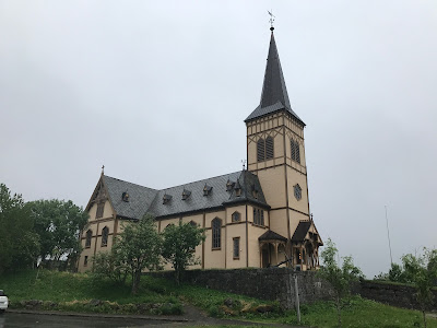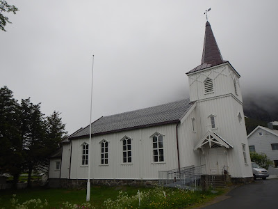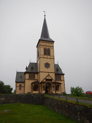 We made a stop on the way back at this beautiful wooden Buksnes Church. It's history is a bit rough though, the first written record referring to the church at Buksnes dates back to 1324. Storms badly damaged the church in 1639. A new, wooden church was completed in 1641. In 1802 the old church was torn down and replaced, using some of the old timbers from the previous church. In 1882, the church was again destroyed by a storm and a new church was built in 1885. The new church was struck by lightning in 1903 and it burned down. The present church building was completed in 1905, makes you wonder why a church would be targeted by God so much though, doesn't it?