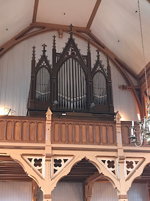 Borge church is first mentioned in written sources in a document from 1335. A church in Borge was built in 1798, rebuilt in 1877 and burned down in 1896. A new church was consecrated in 1898. That church burned down on Valentine's day in 1983. The present church was built in 1986 to replace the previous one. It doesn't quite have the historic look of the other buildings here.