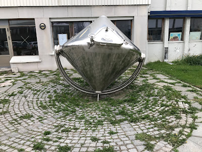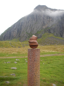 The art installation was about the size of a human head, it was supposed to be 12 different faces as you wander around it... Described as "On the west side stands an intricate artwork by Marcus Raetz: a head looking out over the sea with the top either down or up, depending on your angle of vision." It looked like a big potato to me, for the longest time we were arguing about whether that was actually the art installation, surely there had to be something bigger (and better).