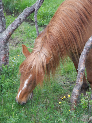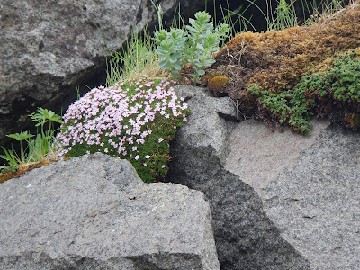 At 10:00 at night it's as bright as ever, so we decided to go for a hike. Above the Arctic circle, being so far north, the sun never really sets. The host at our place had recommended a nice circle route that takes us past some nice meadows, mountains and lakes.