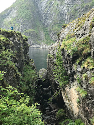 Just to the right of the tunnel we came through, is the trail leading to the small town of Å. The village (originally a farm) is first mentioned in 1567 (Aa). The name is from Old Norse á which means small river. The name was spelled Aa until 1917 when the Norwegian language reform changed the letter aa to å. The village is sometimes referred to as Å i Lofoten (i means in) to distinguish it from other places named Å, because I'm betting there is a lot of them.