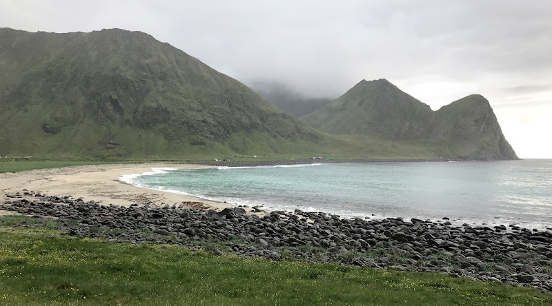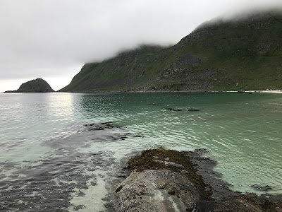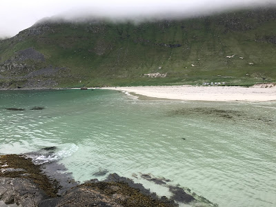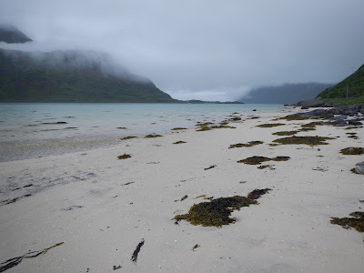 Ramberg is famous for one of the longest white sand beaches in the Lofoten's, and although it looks just like a tropical vacation beach, the water is only 15° Celsius... brrr, but it sure is nice to look at.