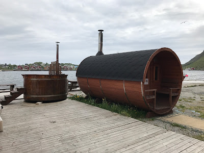 It was a cute little place, complete with a full kitchen, bathroom and living room on the main floor, and 3 bedrooms upstairs. Those stairs were very very steep, it made taking suitcases up a little exciting. Just in front of our place was a fire burning Sauna and Hot Tub with views over the harbour.