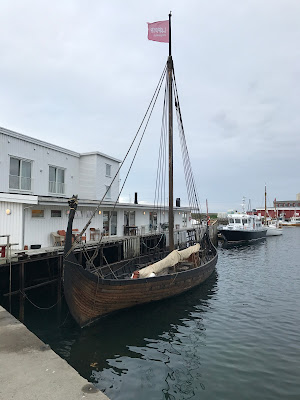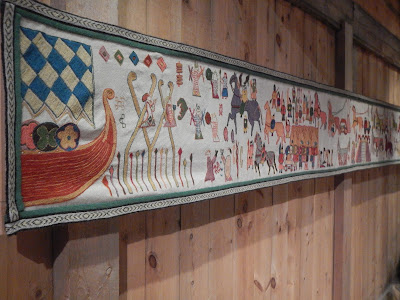 The Gokstad ship here is a replica of the ship we saw at the Viking Ship museum in Oslo, and even the boathouse is a recreation of an excavated boathouse from another Viking archaeological discovery.