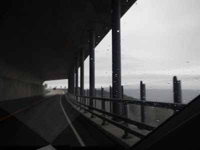 When you arrive at the end of the Hwy 10, you go through a small tunnel and come out into a parking lot. Further South you can hike around the Southern tip of the islands and see as far as the fog will allow you.