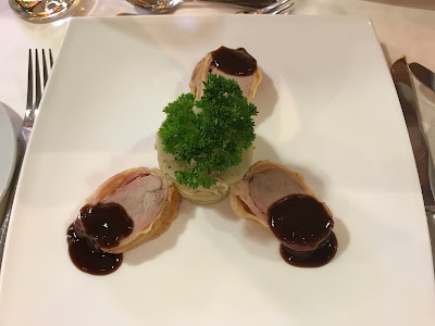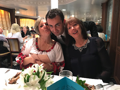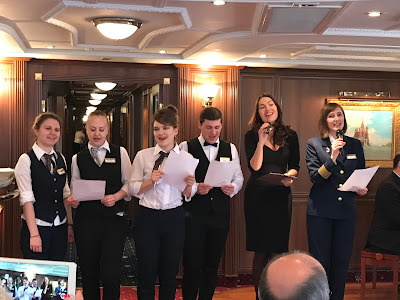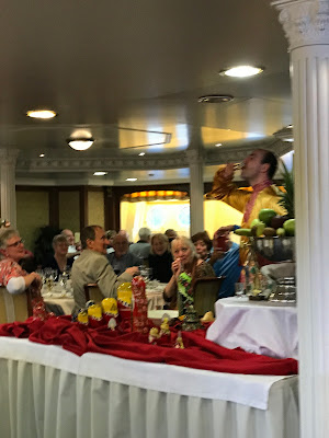 I am sure everyone needed another drink after that song was done, so it was off to the Dining Room for the Captain's Farewell dinner. Our last dinner on the Volga Dream, so we wanted to spend it with Susan and Judy, and Susan's friend the Maitre d' Dean.