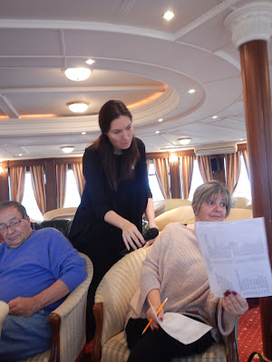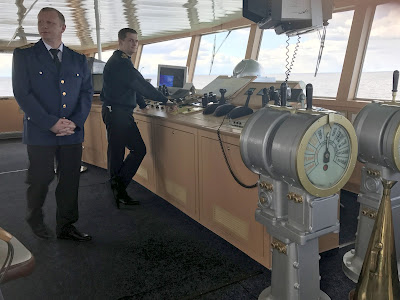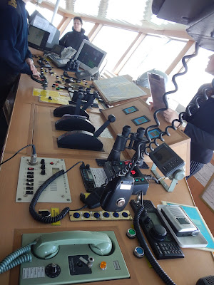 Just before lunch there was an opportunity for the Captains bridge tour, so we got a chance to see the control room for our ship and ask some questions. Only problem, the captain doesn't speak English, Maria our translator did her best.