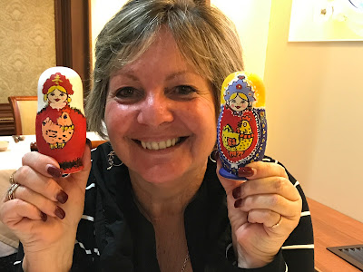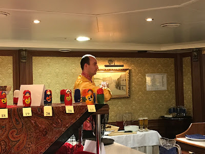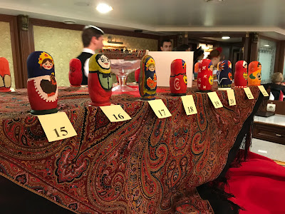 The other part of the night was the final judging of the painted Matryoshka Dolls from earlier in the cruise, we all voted for Andy's doll from our group, but alas he did not win. There was some talented doll painters on this boat.