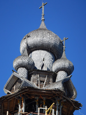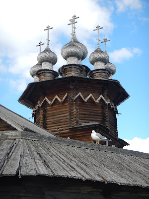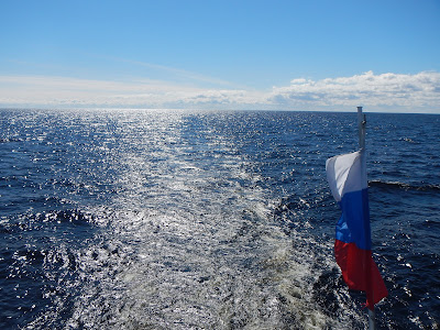 Happily for all of us, we wouldn't arrive at our next stop until the afternoon, so we had a quiet morning. Norine went to a Russian Cooking class to learn how to make Blinis and Pelmenis, and I chilled out on the deck while we crossed Onega Lake, Europe's second largest..
