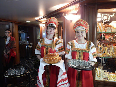 As soon as we board we are treated to a Vodka, Salt and Bread boarding ceremony, you break off a small piece of bread, dip it in salt, then take your vodka shot, and eat the bread... welcome aboard!