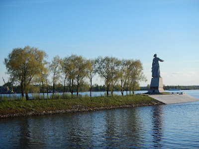 Leaving the Rybinsk lock we see the huge statue of Mother Volga looking out across the reservoir, the statue that is almost 250 feet tall was built in tribute to those that helped build the series of locks along the Volga river.
