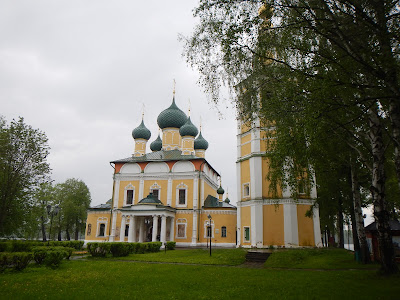 The town of Uglich is locked in history for a tragic moment in time, on the 15th of May, 1591, Ivan the Terrible's surviving son Dmitry died in the garden. The stories told were that he stabbed himself multiple times with a knife during a seizure, multiple times, in the back. The bells alerted the townspeople who literally tore apart those that were suspected of the murders. Apparently Dmitry's murder was under orders of Boris Gudonov who wanted to establish a new Russian leadership after Ivan the Terrible's death.