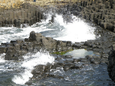 The Giant's Causeway is an area of about 40,000 interlocking 5/6 sided basalt columns, the result of an ancient volcanic eruption. It was declared a World Heritage Site by UNESCO in 1986. It's a half mile steep hike down a road to the seaside area, and over a rise to the awe-inspiring sight. You can choose to wait and take the bus known as the "Causeway Coaster", we chose to walk.