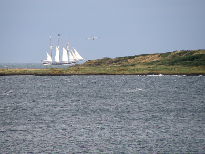 We walked across our lawn to the beach for a shoreline stroll. As we trekked down the sand, one of the last tall ships sails by. It's really a magnificent and colourful area.