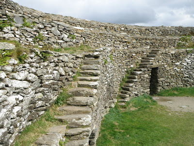 Traces of ancient artifacts, dating to the early Iron Age, surround the fort. The massive stone wall is 3.9m (13ft) thick and encloses an area 23.4m (77ft) in diameter. In the walls are small chambers; a series of stairs at regular intervals inside the walls gave access to the wall-walk.