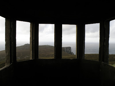 We park the car and walk up a small path, it is so windy at the top, that we have to take cover in a small cement shelter, the remains of a WW1 naval observation station. Inside the shelter the wind sounded like a hurricane, it was much worse outside, it was hard to walk upright.