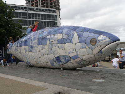 Samson & Goliath are a pair of shipbuilding Cranes in Belfast harbour, they are both over 100 meters (300 feet) tall, prominent on the skyline, and have become landmarks of the city. Another landmark of the city is the Big Fish, a printed ceramic mosaic sculpture... don't ask, I don't know.
