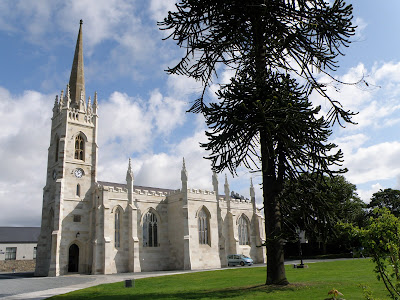 From the grounds of Inch Abbey we look across a small lake at Downpatrick's Down Cathedral. Down Cathedral is part of the Church of Ireland. It was built in 1183 as a Benedictine Monastery. Saint Patrick was buried here in 461 AD on Cathedral Hill, within the grounds of Down Cathedral.
