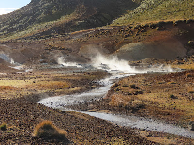 Our first stop in this hotbed area was the Seltun geothermal area. It looks like a mars landscape with a variety of colours and steaming vents, the site is covered with bubbling pools of mud, fumaroles and hot springs. There are well-maintained wooden walkways around the springs from where you can observe, with several educational signs about the geothermal effects at work here.